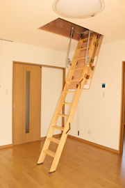折りたたんで屋根裏に収納し、必要な時だけ引き降ろして使える梯子(はしご)は、省スペースアイテムです。 -